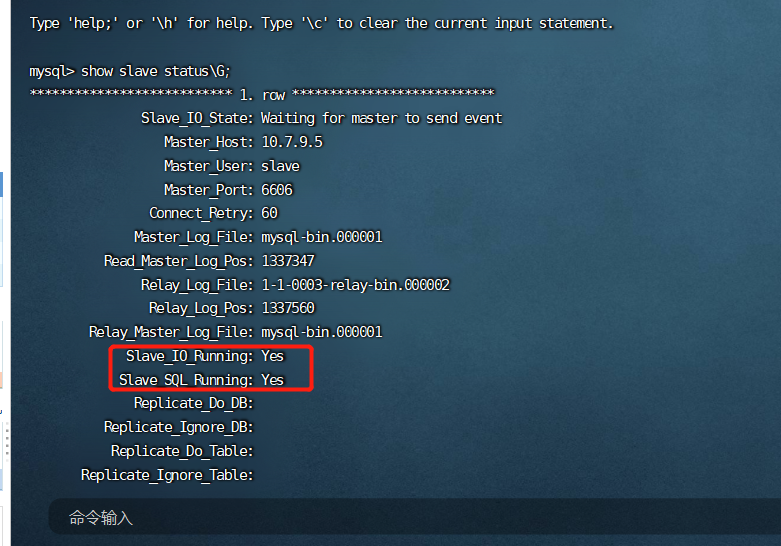 可以看到红框出现了两个 YES,则主从配置成功