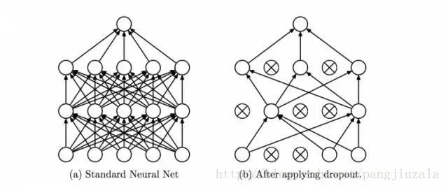 (1)Dropout(丢弃)——Dropout 是一种正则化技术,可防止网络过度拟合套。顾名思义,在训练期间,隐藏层中的一定数量的神经元被随机地丢弃。这意味着训练发生在神经网络的不同组合的神经网络的几个架构上。你可以将 Dropout 视为一种综合技术,然后将多个网络的输出用于产生最终输出。