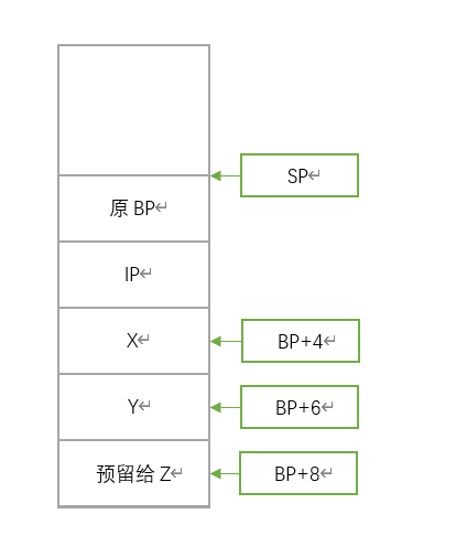 1.通过堆栈传参,需要在主程序中将参数压入堆栈,然后在堆栈中通过BP找到参数。