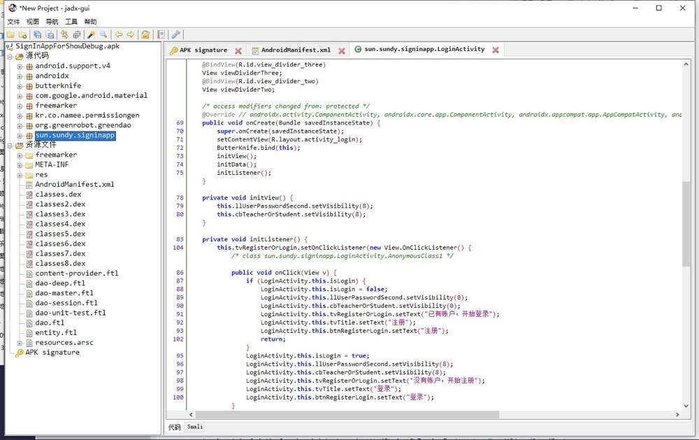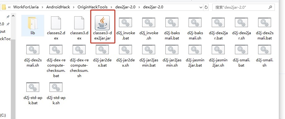 - dex2jar: dex文件转jar文件,下载地址:https://sourceforge.net/projects/dex2jar/files/