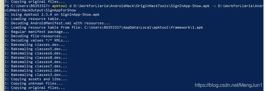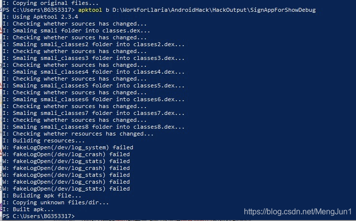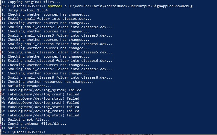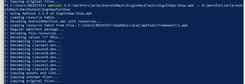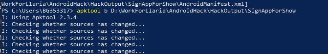 apktool b D:\WorkForLlaria\AndroidHack\HackOutput\SignAppForShowDebug
