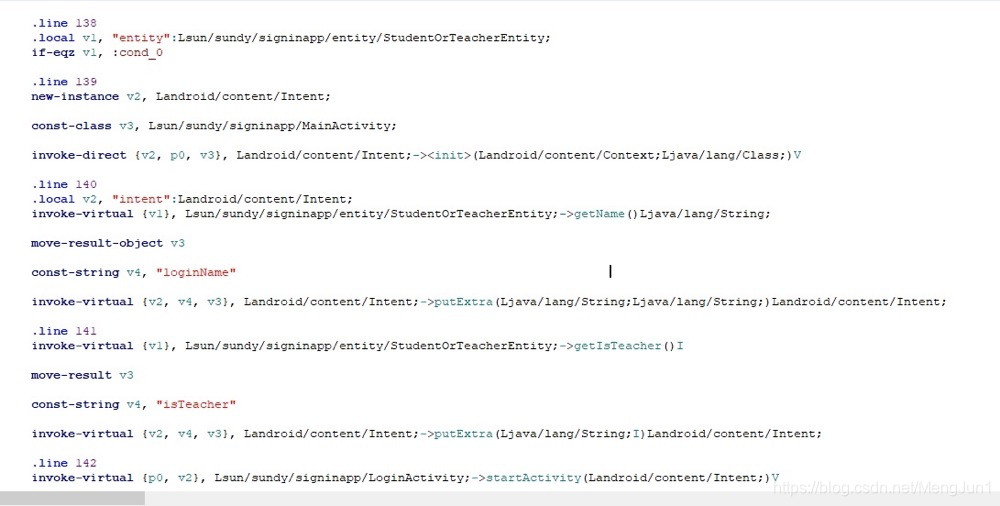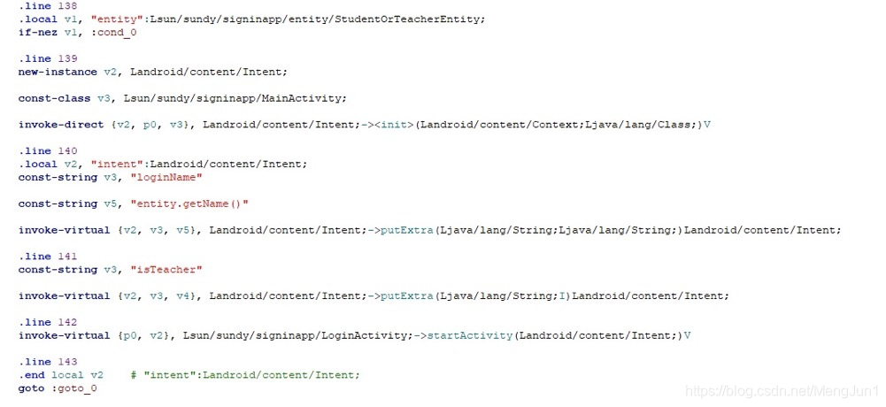 .field < 访问权限> [ 修饰关键字] < 字段名>:< 字段类型>package/name/ObjectName;->methodName(III)Z