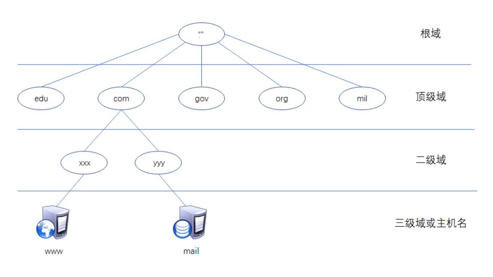 域名具有层次结构,域名需要服务器进行管理,域名服务器也有层次结构。