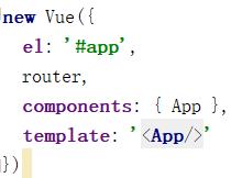 第9行的router相当于router:router,为ES6写法,在对象中,如果键值对一样的话,可以简写为一个;