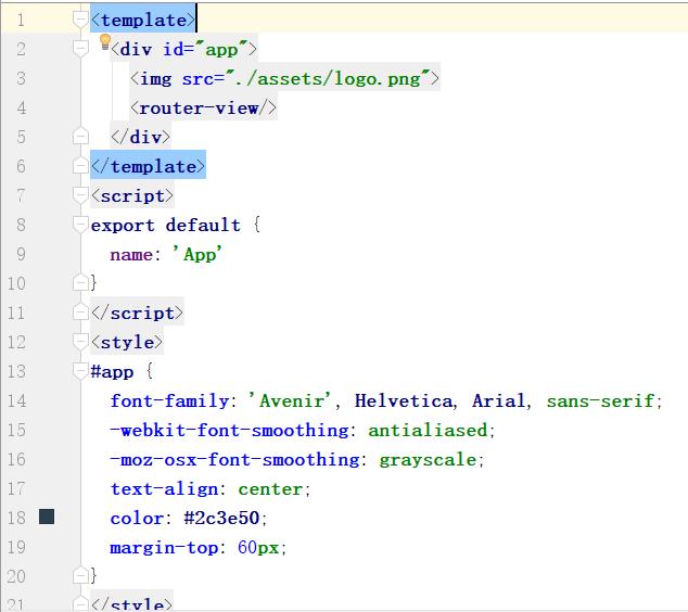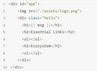 main.js中的template: '<App/>'在html页面中添加<App></App>模板,模板内容即为HelloWorld组件内容。