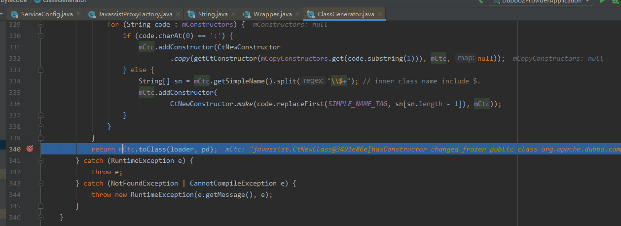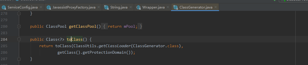 Dubbo使用javassist动态生成类。Dubbo有两个场景使用动态类。