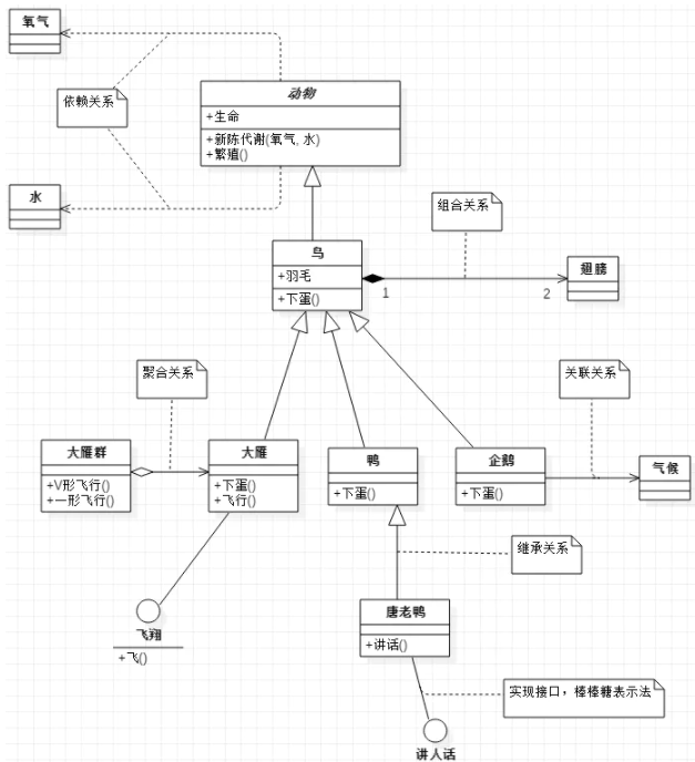 鸟和翅膀就是组合关系,因为它们是部分和整体的关系,并且翅膀和鸟的生命周期是相同的。
