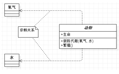 动物依赖氧气和水。调用新陈代谢方法需要氧气类与水类的实例作为参数