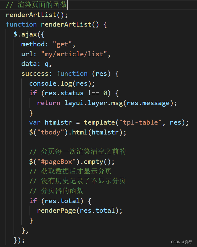 一进入页面发起ajax请求,获取数据渲染页面,渲染分页器。