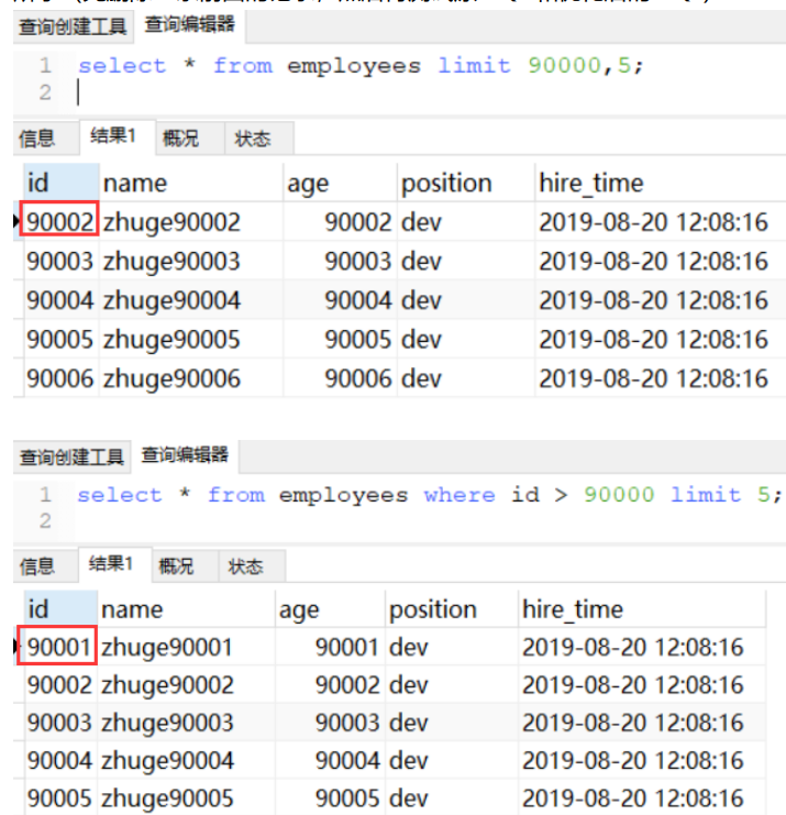) ENGINE=InnoDB AUTO_INCREMENT=1 DEFAULT CHARSET=utf8 COMMENT='员工记录表';很多时候我们业务系统实现分页功能可能会用如下sql实现
