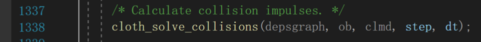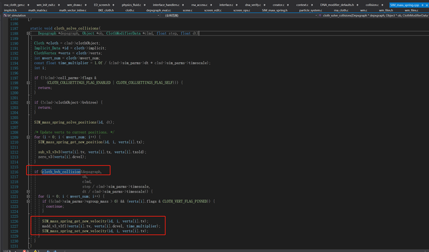 往下走,有一个判断,cloth_bvh_collision,(尚未具体理解这是什么含义,但可以确定是计算碰撞检测)