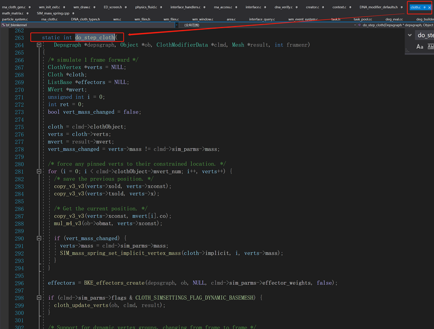 对源码探索了一段时间后,找到了cloth.c文件中的clothModifier_do方法。这个就是关于布料结算的方法了。