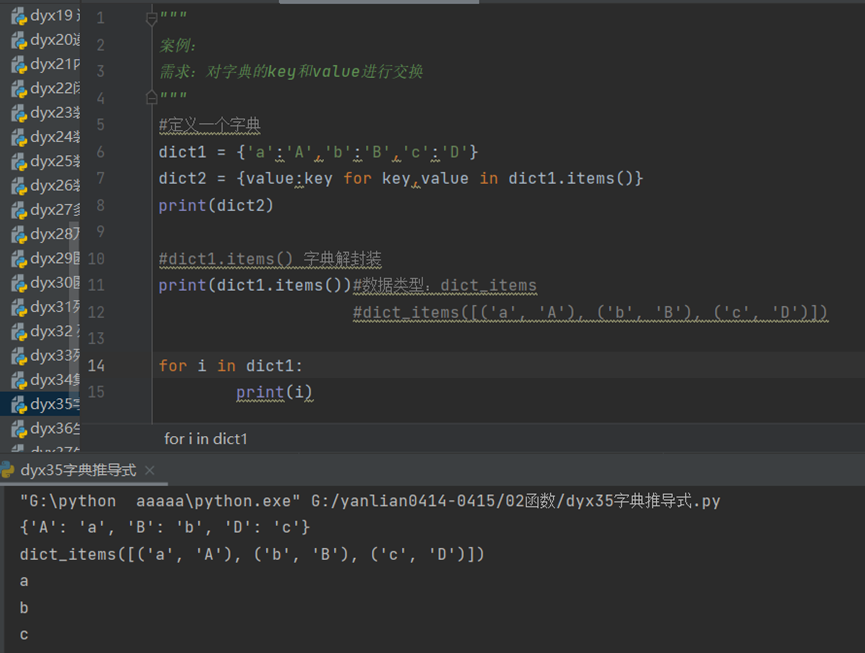 #dict_items([('a', 'A'), ('b', 'B'), ('c', 'D')])