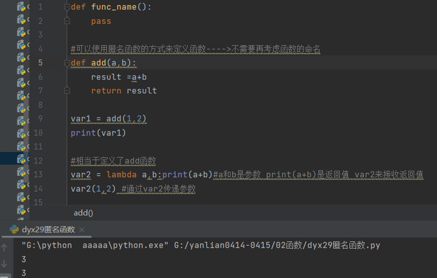 var2 = lambda a,b:print(a+b)#a和b是参数print(a+b)是返回值var2来接收返回值