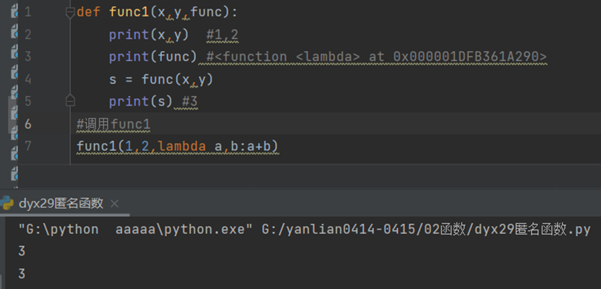 print(func) #<function <lambda> at 0x000001DFB361A290>