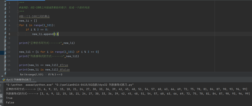 #案例2:将1-100之间能被3整除的数字,组成一个新的列表