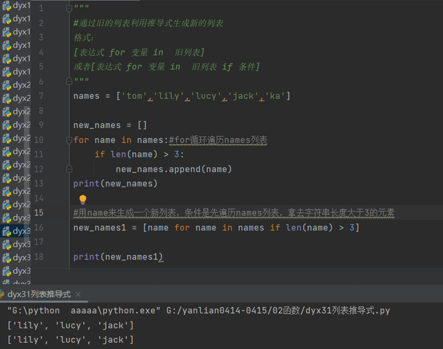 #用name来生成一个新列表,条件是先遍历names列表,拿去字符串长度大于3的元素