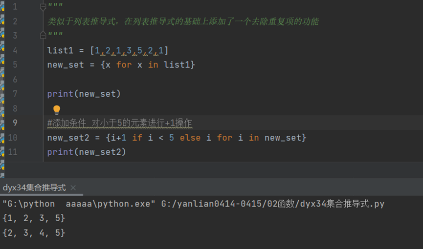 类似于列表推导式,在列表推导式的基础上添加了一个去除重复项的功能
