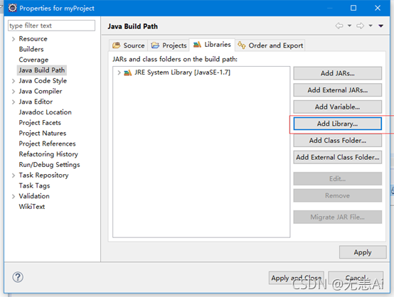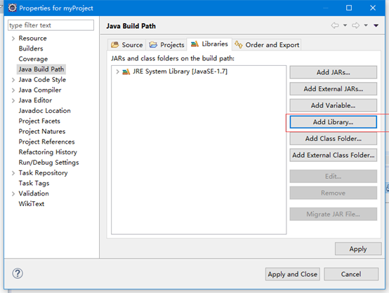 3.同样的窗口里 点击 add library 在新窗口里选择如图所示选项