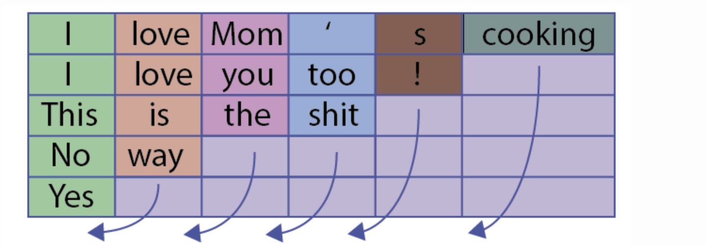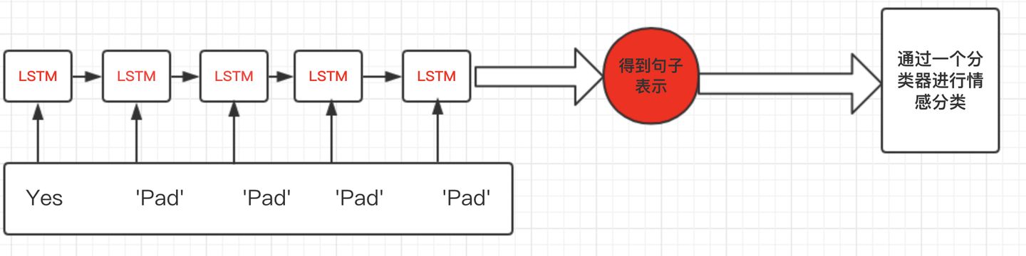 但是这会有一个问题,什么问题呢?比如上图,句子“Yes”只有一个单词,但是padding了5的pad符号,这样会导致LSTM对它的表示通过了非常多无用的字符,这样得到的句子表示就会有误差,更直观的如下图: