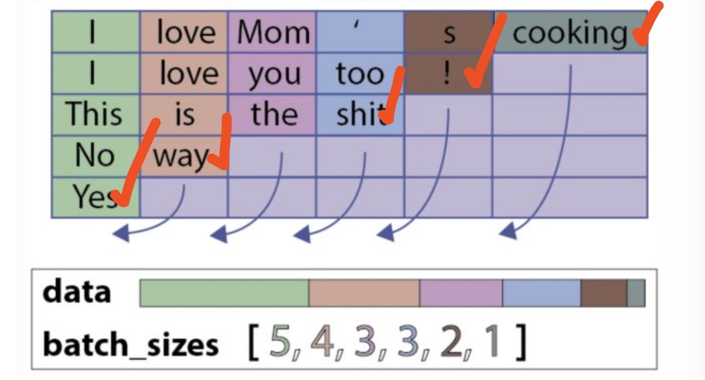 Variable中保存的序列,应该按序列长度的长短排序,长的在前,短的在后(特别注意需要进行排序)。即input[:,0]代表的是最长的序列,input[:, B-1]保存的是最短的序列。