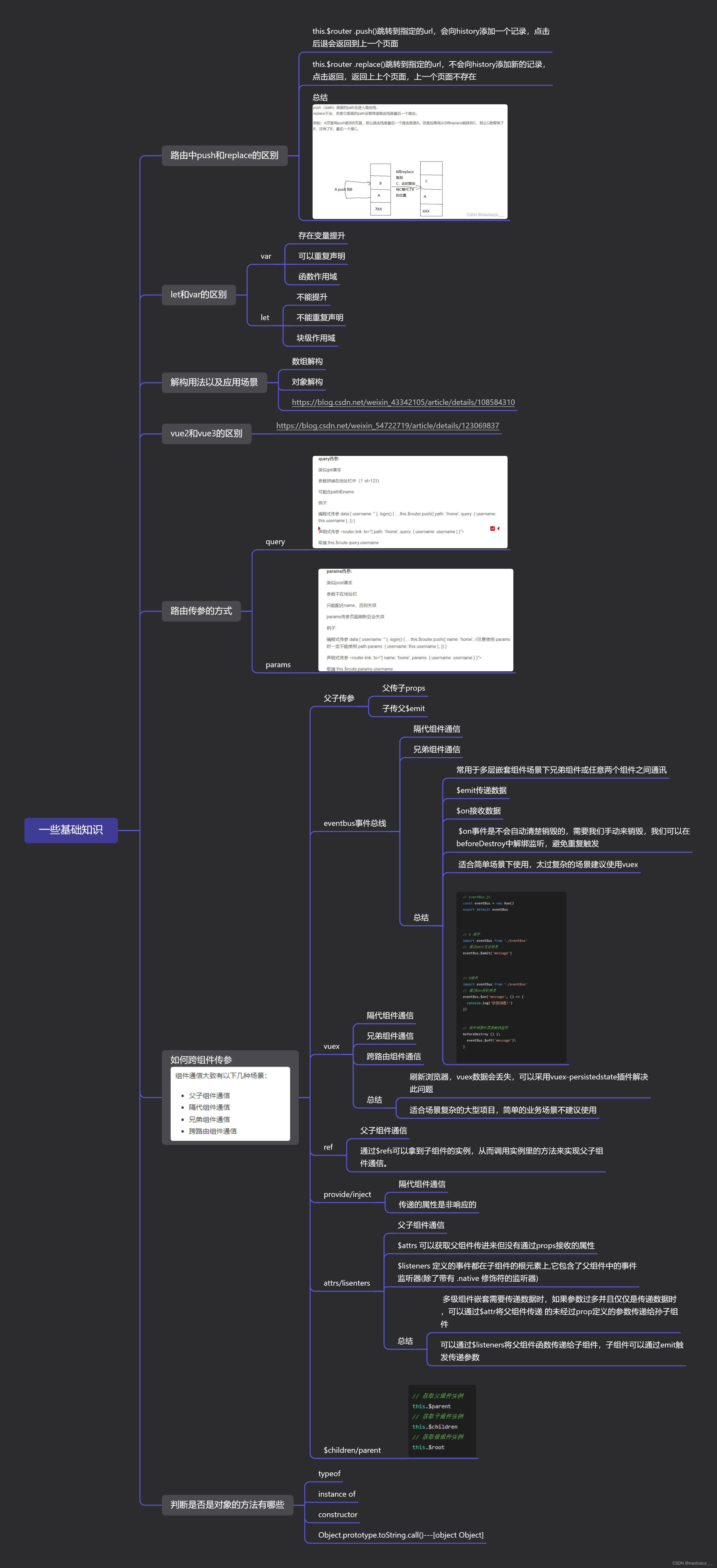 中软一面整理路由中push和replace的区别let和var的区别解构用法以及应用场景vue2和vue3的区别路由传参的方式如何跨组件传参判断是否是对象的方法有哪些版权声明:本文为xiaobaiya___原创文章,遵循CC 4.0 BY-SA版权协议,转载请附上原文出处链接和本声明。原文链接:https://blog.csdn.net/xiaobaiya___/article/details/125457282