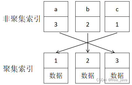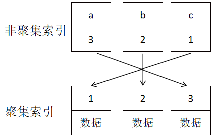 非聚集的意思:name索引的key和行数据,在物理上没有聚集存储在一起,而是分开存储。如下图。查询name列,查找到a时,其值为主键id 3,而不是行数据。然后再根据3去查聚集索引,才能查到实际数据。这个过程,是mysql内部实现的。很显然,非聚集索引额外查询了一次,性能必然低于聚集索引。那为什么还要建立非聚集索引?