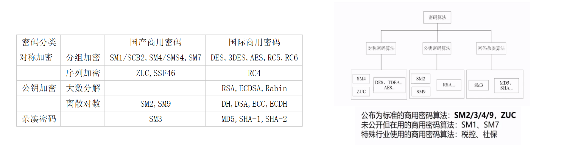 跟SM1类似,是我国自主设计的分组对称密码算法,用于替代DES/AES等国际算法。SM4算法与AES算法具有相同的密钥长度、分组长度,都是128bit。于2012年3月21日发布,适用于密码应用中使用分组密码的需求。相关标准为“GM/T 0002-2012《SM4分组密码算法》(原SMS4分组密码算法)”