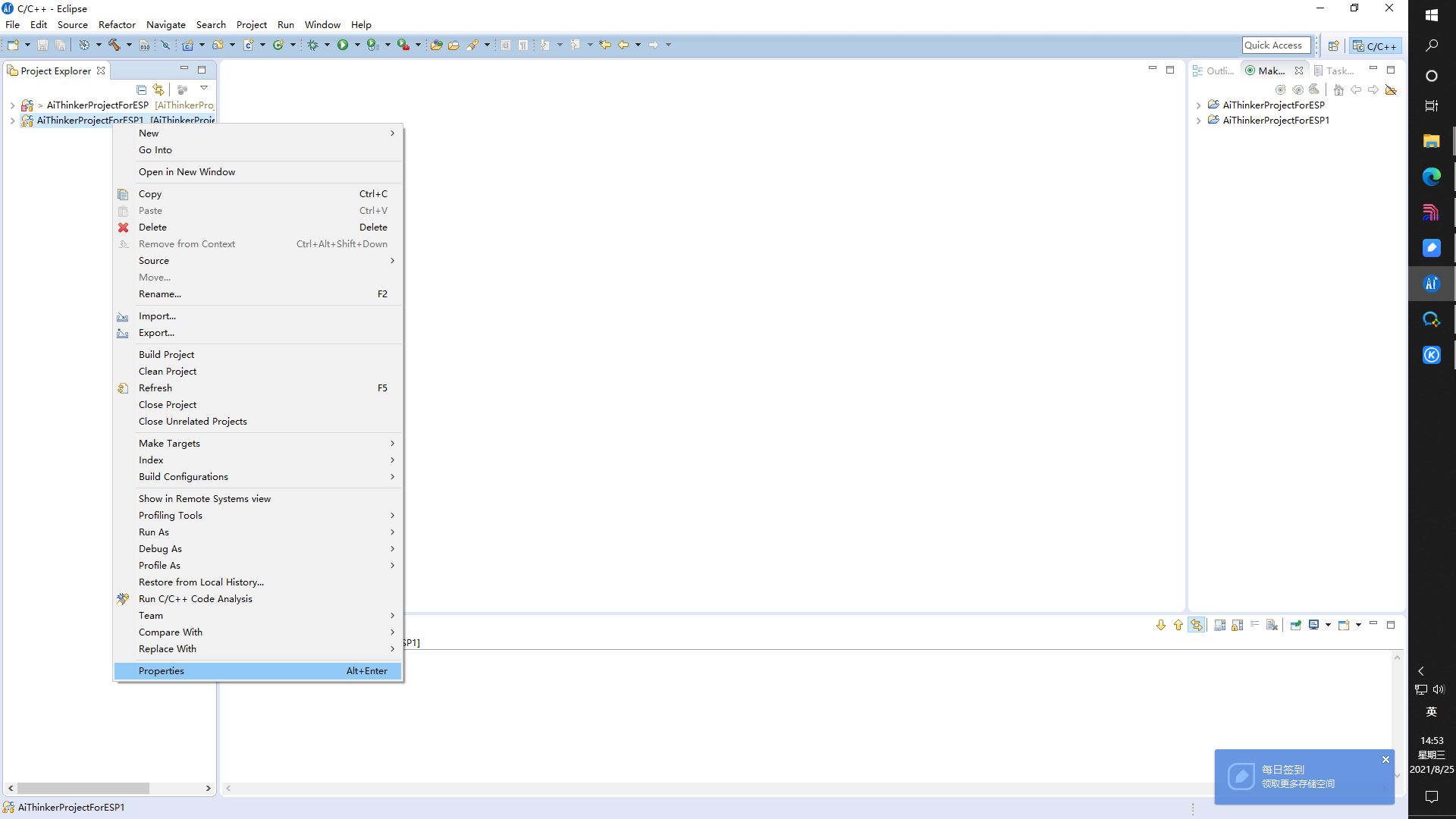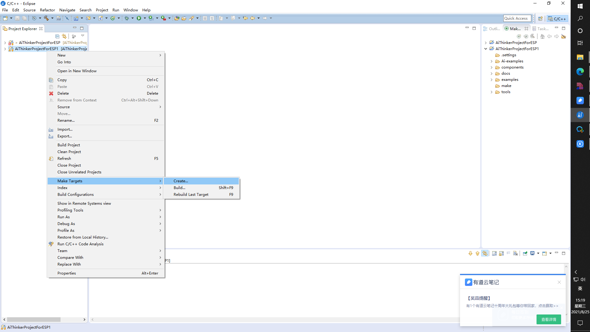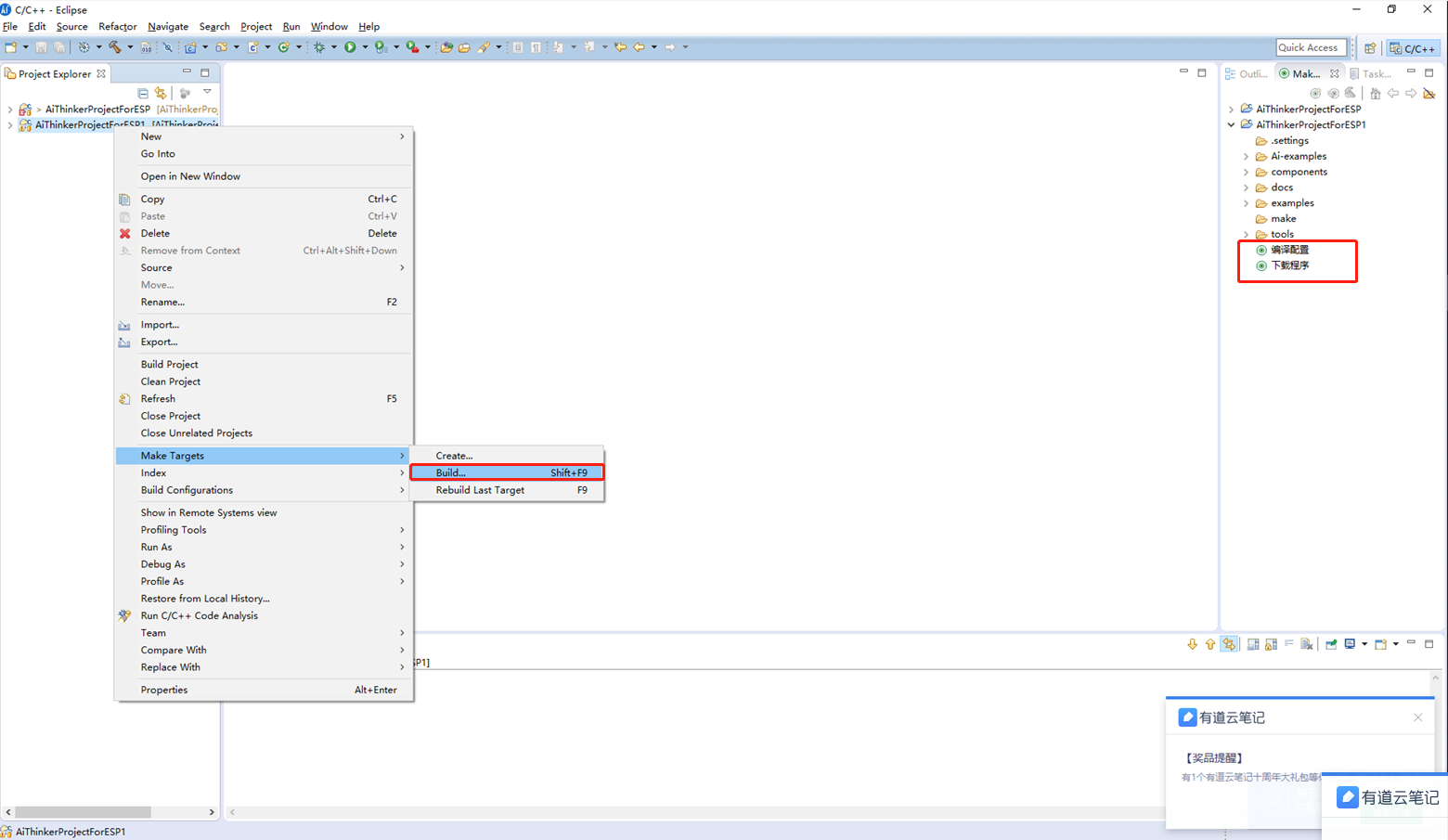添加完的快捷键可以在工程右侧或右键Make Targets -> Build查看