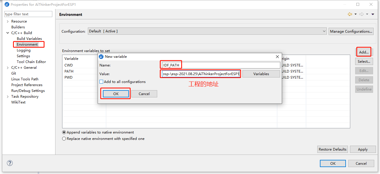 配置编译工程的路径。