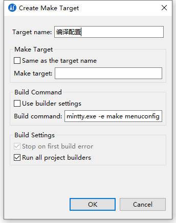 编译配置:mintty.exe -e make menuconfig