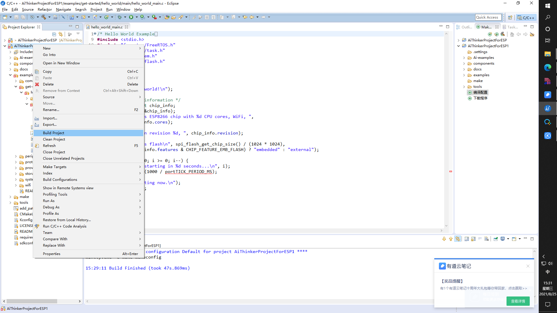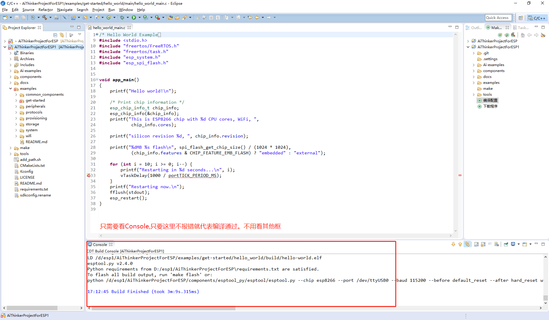 至此环境搭建完成,打开hello_world工程main.c文件