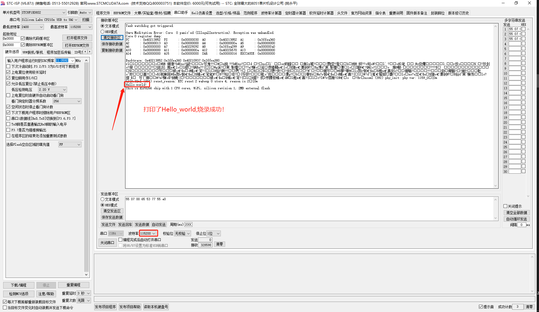 打开串口软件,看是否打印 Hello_wored
