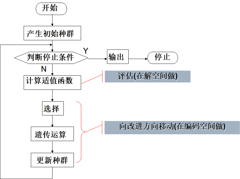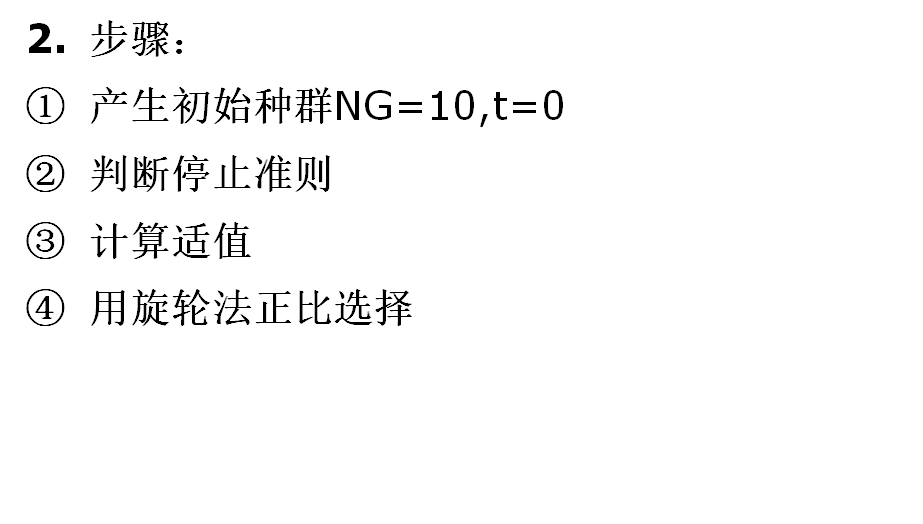 算法步骤:1、初始种群的产生:随机产生(依赖于选择的编码方法——二进制编码/实数编码);种群大小(依赖于计算机的计算机能力和计算复杂度)。