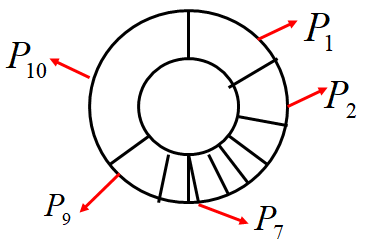 ,得到选择概率P后,采用轮转法,计算得到轮转法的元素: