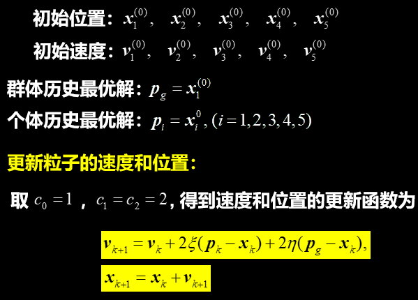 每一个粒子还有一个速度以决定飞行的距离和方向。这个速度根据它本身的飞行经验以及同伴的飞行经验进行动态调整。