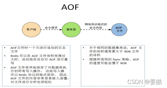 AOF文件持续增长而过大时,会fork出一条新进程来将文件重写(也是先写临时文件最后再rename),redis4.0版本后的重写,是指上就是把rdb 的快照,以二级制的形式附在新的aof头部,作为已有的历史数据,替换掉原来的流水账操作。