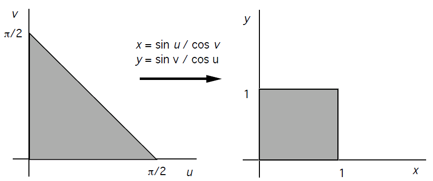 从而有$(x,y)=\left(\frac{\sin{u}}{\cos{v}},\frac{\sin{v}}{\cos{u}}\right)$