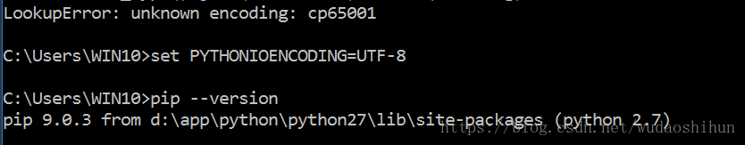 在执行pip后尝试运行set PYTHONIOENCODING=UTF-8,设置环境变量编码格式为UTF-8