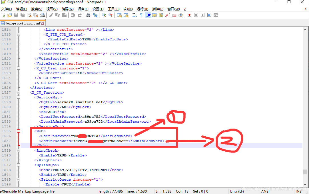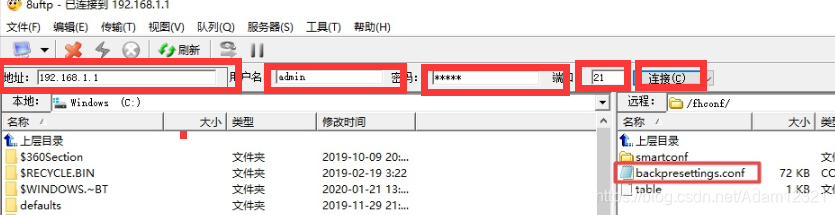 按照步骤2 ftp服务器的设置填写并连接,按照目录读取,双击图中backpresettings.conf,会把文件下载到 此电脑→文档里使用Notepad++打开