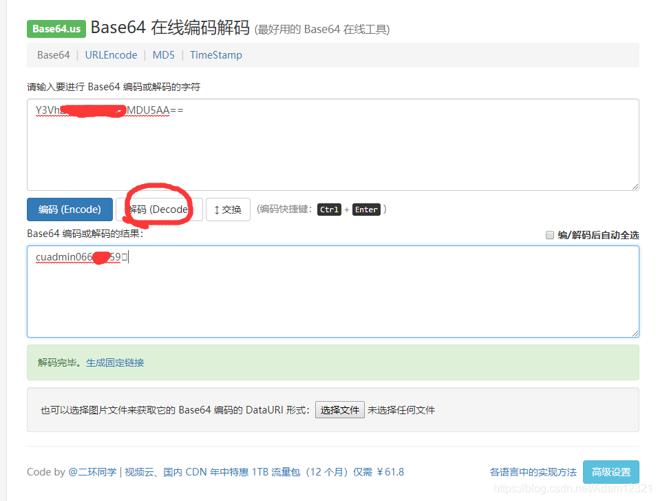 将图中2黑色的加密密钥复制到Base64解密网站进行解密