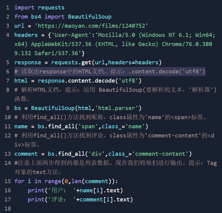 然后将爬取到的html转化为utf8的形式(html=res.content.decode(‘utf8’))。