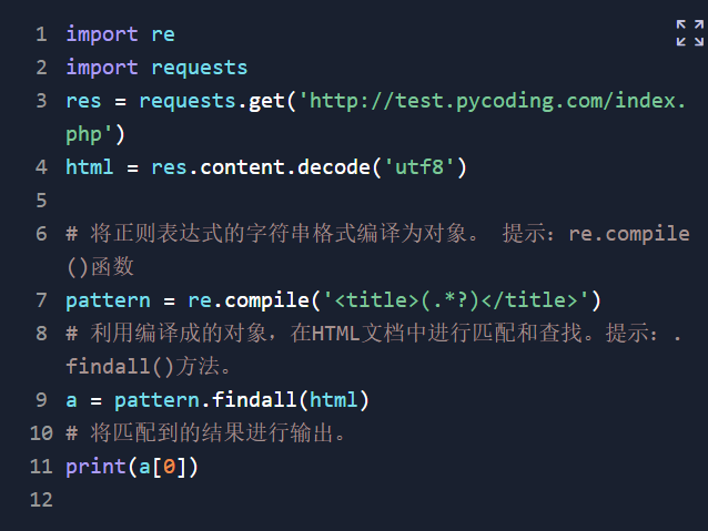 而后用re.compile()函数将正则表达式的字符串格式编译成对象并赋值出去