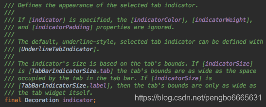 看注释大体是说如果使用自定义的indicator,那么indicatorColor、indicatorWeight、indicatorPadding都将被忽略