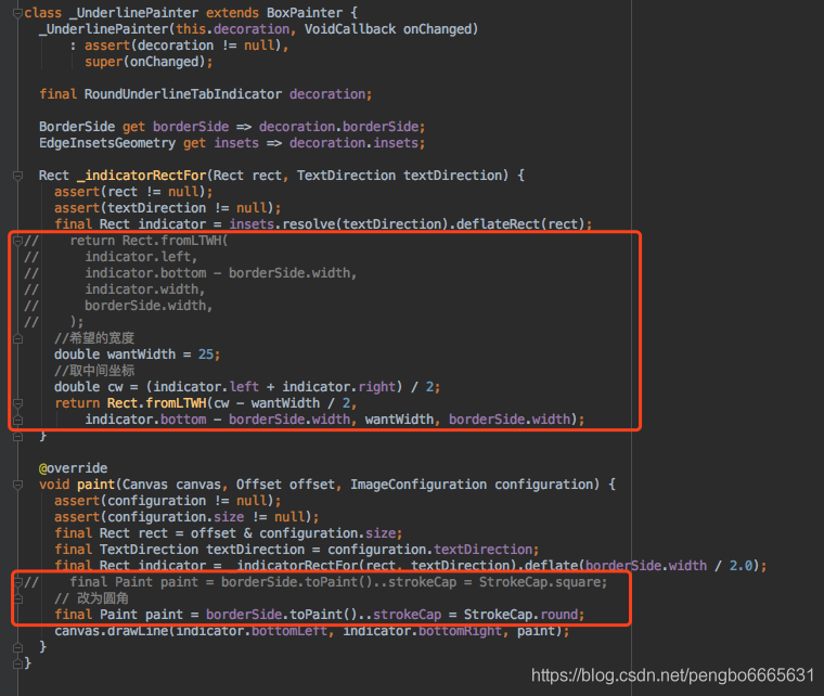 然后在UnderlineTabIndicator中找到了答案,我们把UnderlineTabIndicator拷贝出来改个名