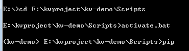 输入active.bat用于启动虚拟环境,如果正常启动,会像第三行那样在前面出现(kv-demo)
