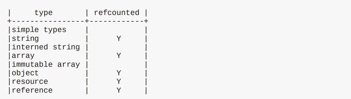 支持引用计数的value类型其 zval.u1.type_flag 包含 (注意是&,不是等于)