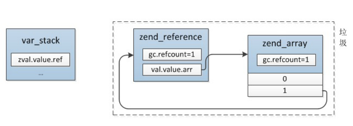 PHP变量的回收是根据refcount实现的,当unset、return时会将变量的引用计数减掉,如果refcount减到0则直接释放value,这是变量的简单gc过程,但是实际过程中出现gc无法回收导致内存泄漏的bug,先看下一个例子: