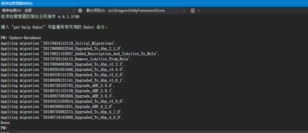 6.配置Entityframwork的数据库连接,并执行Update-DataBase指令