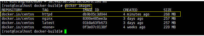 [root@localhost docker- build]# docker build -t docker.io/centos:httpd ./